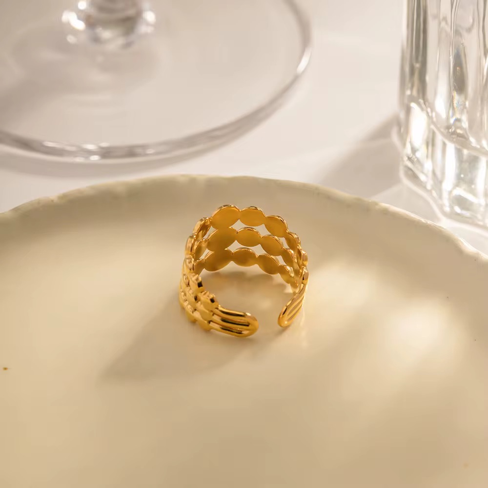 Vintage Geometric Oil drop 18k gold-plated gold Three- layer Stainless Steel adjustable Ring for women