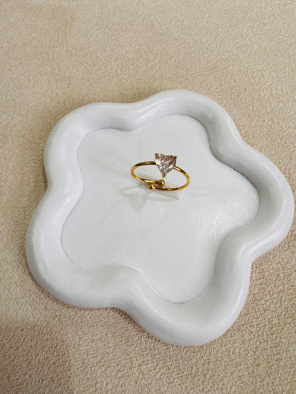 Add a touch of love to your style with this elegant open-band ring, crafted in a rich gold-tone finish and adorned with a sparkling heart-shaped clear stone. The minimal design with a romantic twist makes it ideal for everyday wear or as a thoughtful gift. Its adjustable design ensures a comfortable fit for most sizes, making it a versatile and lovely addition to any jewellery collection.