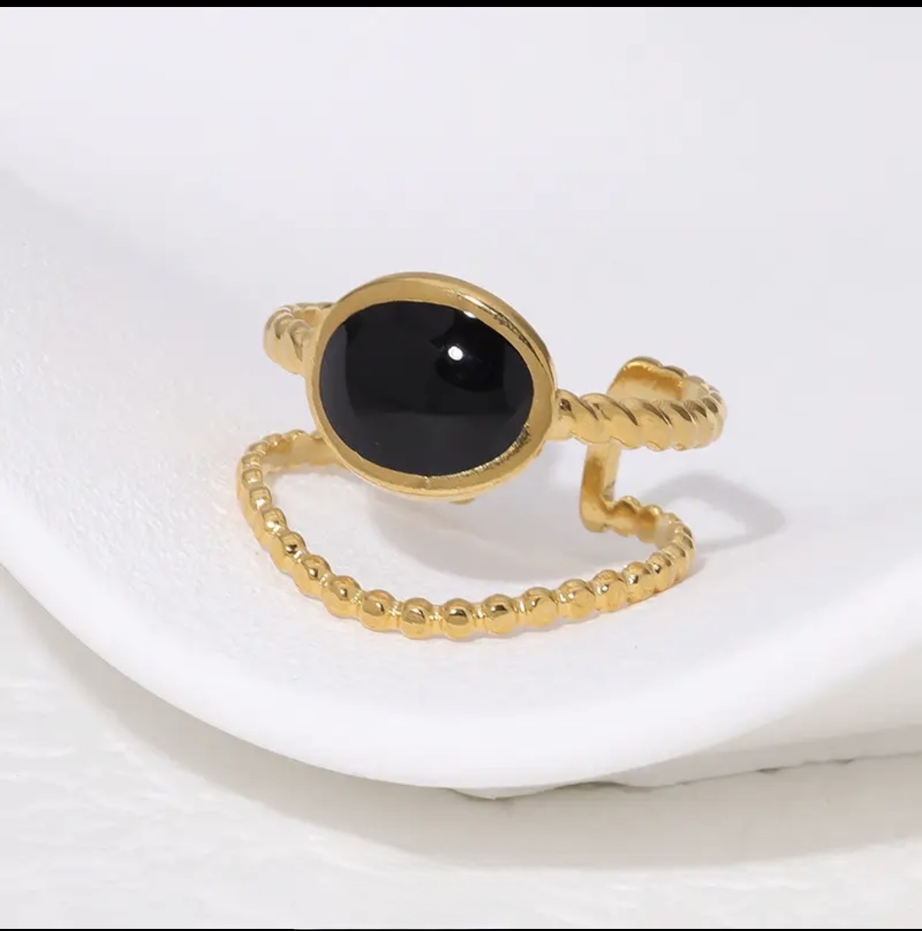 Stainless Steel geometric black Luna ring