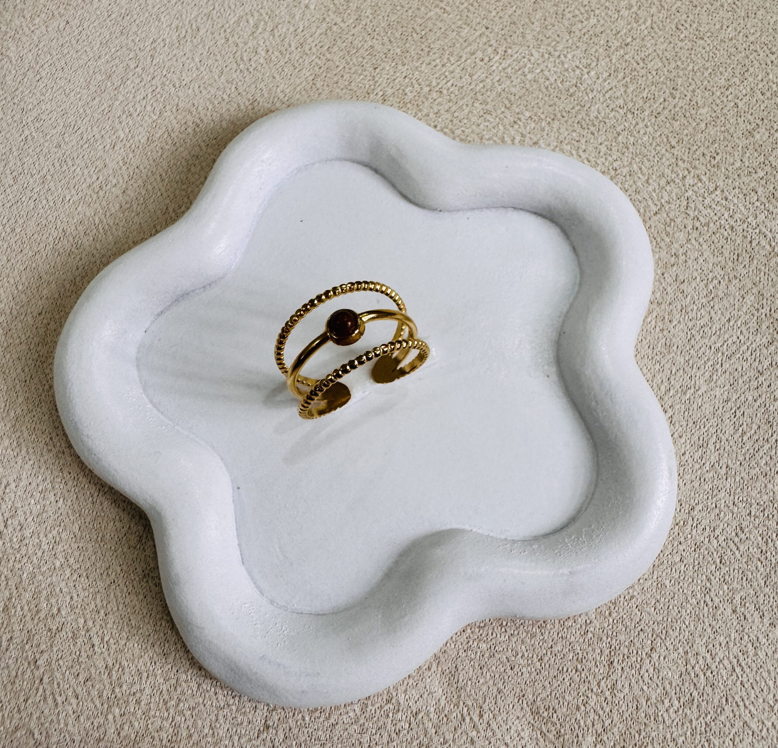 Adjustable Fashion 18K Golden Plated Stainless Steel Rings with brown stone