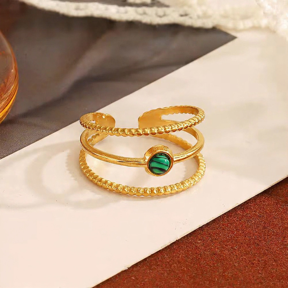 Adjustable Fashion 18K Golden Plated Stainless Steel Rings with  greenstone