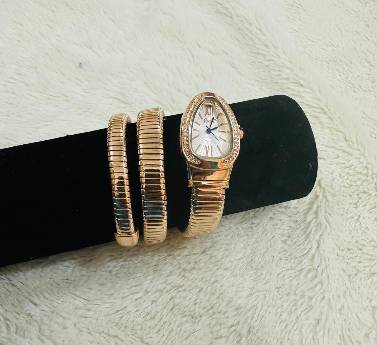 Rose Gold Watch & Bangle Duo. Elegant rose gold-tone watch with white dial . Stylish combo for everyday wear